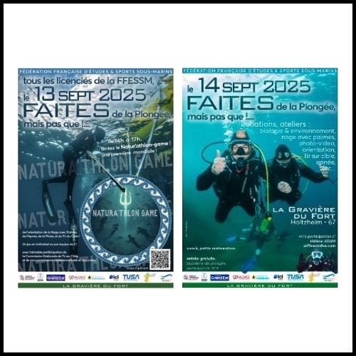 • Samedi 13 septembre : réservé aux licenciés FFESSM avec le tout premier Natur'Athlon Game, une compétition ludique mêlant nage avec palmes, apnée, orientation, photo et tir sur cible. Une expérience inédite !